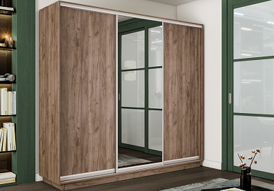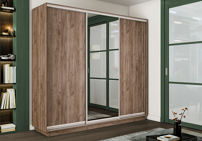 Шкаф-купе Премиум 3х дверный 2100х2400х600 Крафт табачный 210x240 Крафт табачный, С полками