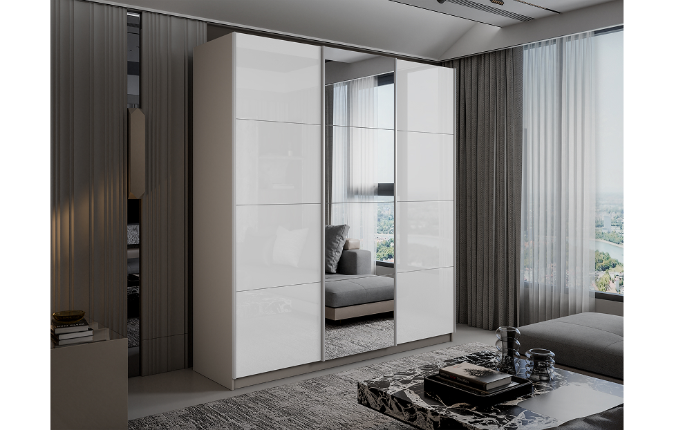 Цена на Шкаф-купе Lux 210х230х57 кашемир Белый глянец/Зеркало/Белый глянец от производителя , лучший выбор!